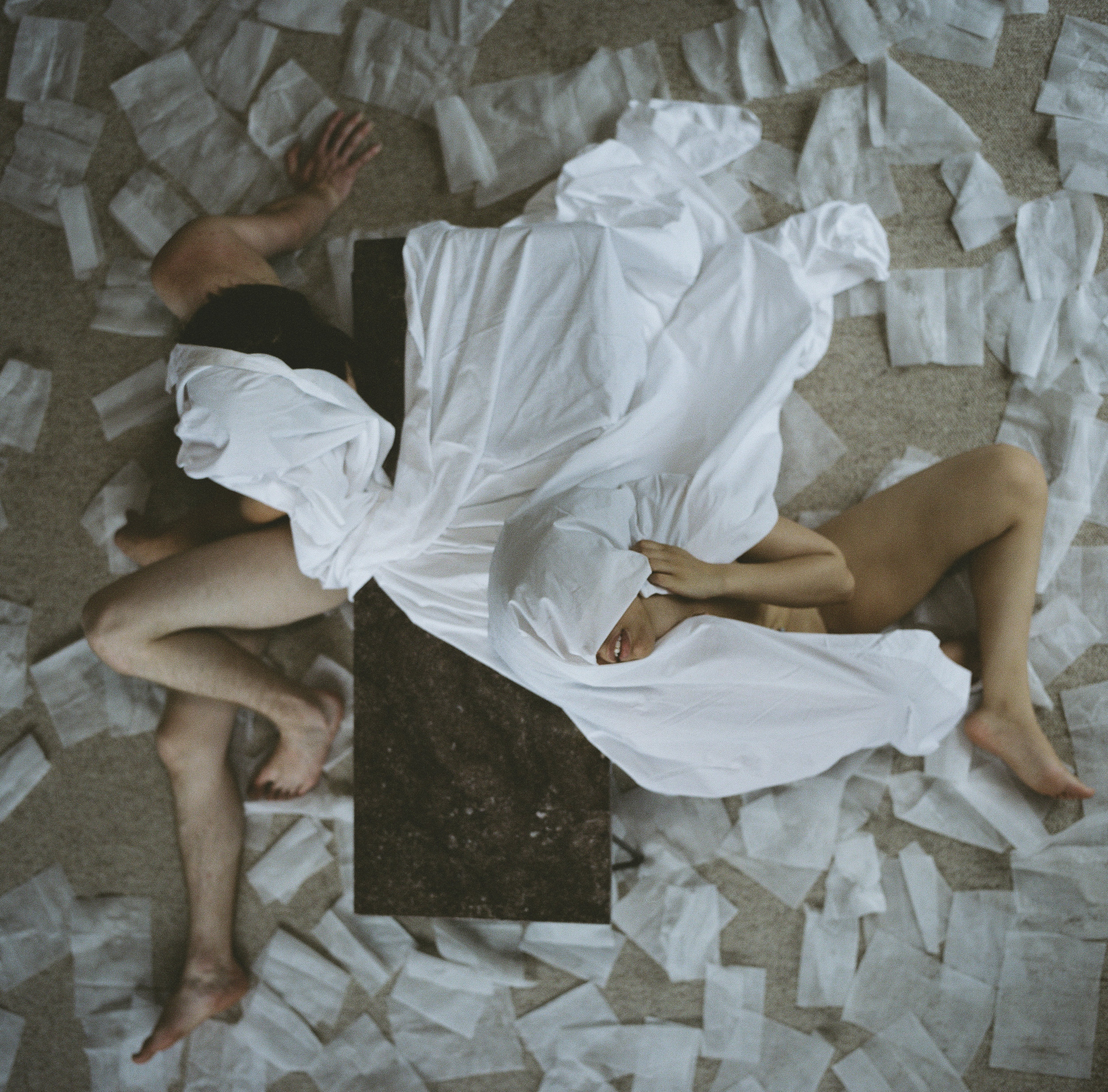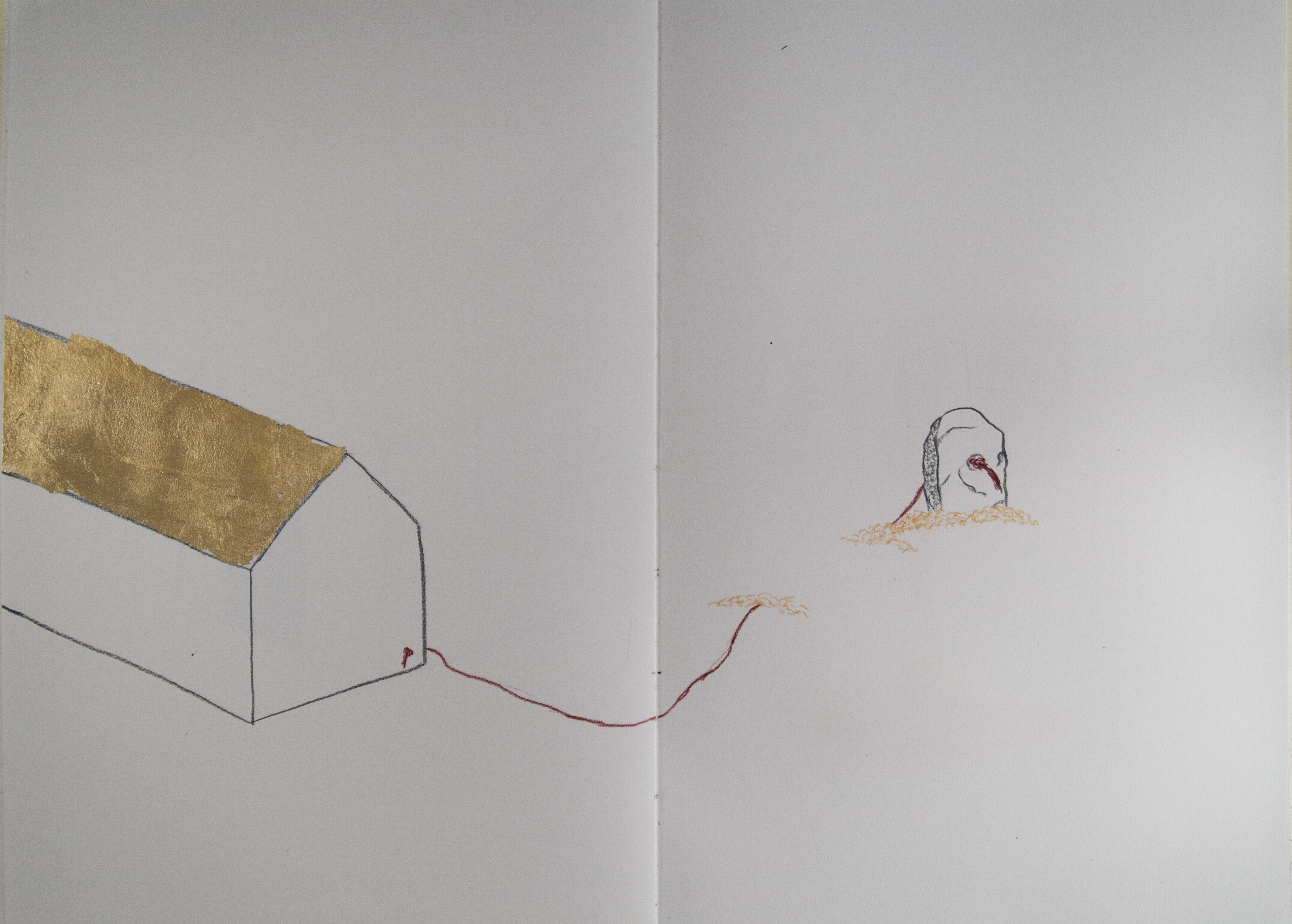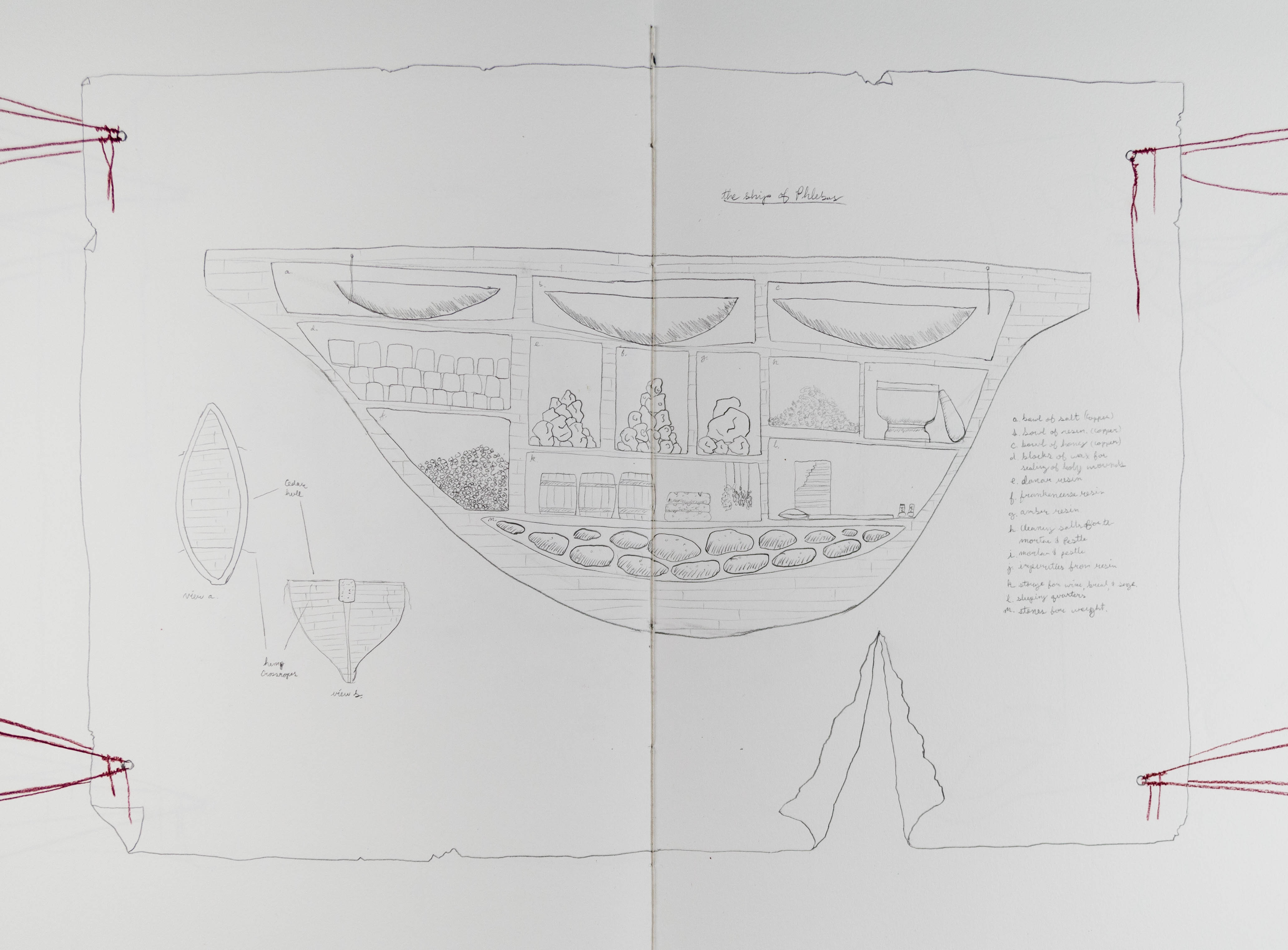 Findings was a collaborative installation with photographer David Dunsmoor. The work consisted of four hand-made books laid around a table. Guests were invited to sit and look through the books. Across from the table, a large, fabric cube with a floating bedroom suspended inside hung from the ceiling.